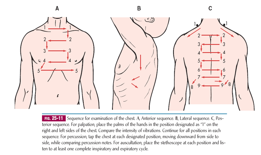 - Supraclavicular area, then clavicles should be percussed directly to evaluate the upper lobes.