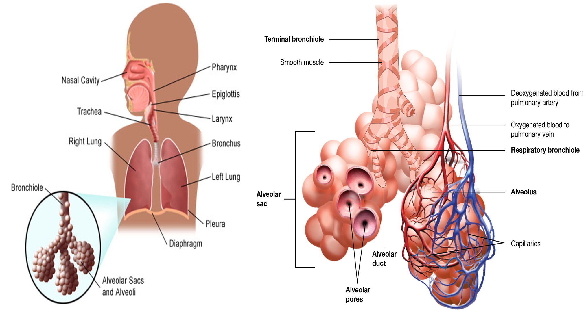 • The respiratory tract extends from the nose to the alveoli and includes not only the air-conducting passages also but the blood supply