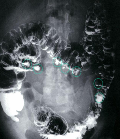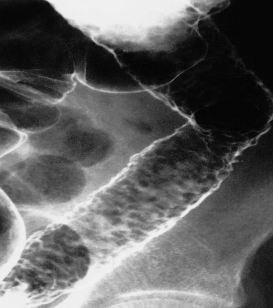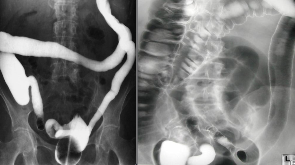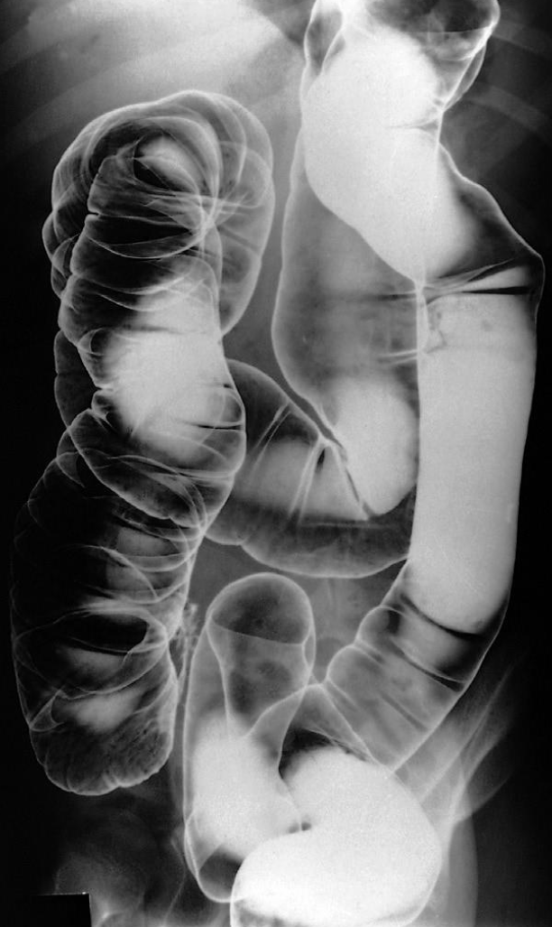 A. Give the name of the imaging examination in the given image. Enema double contrast