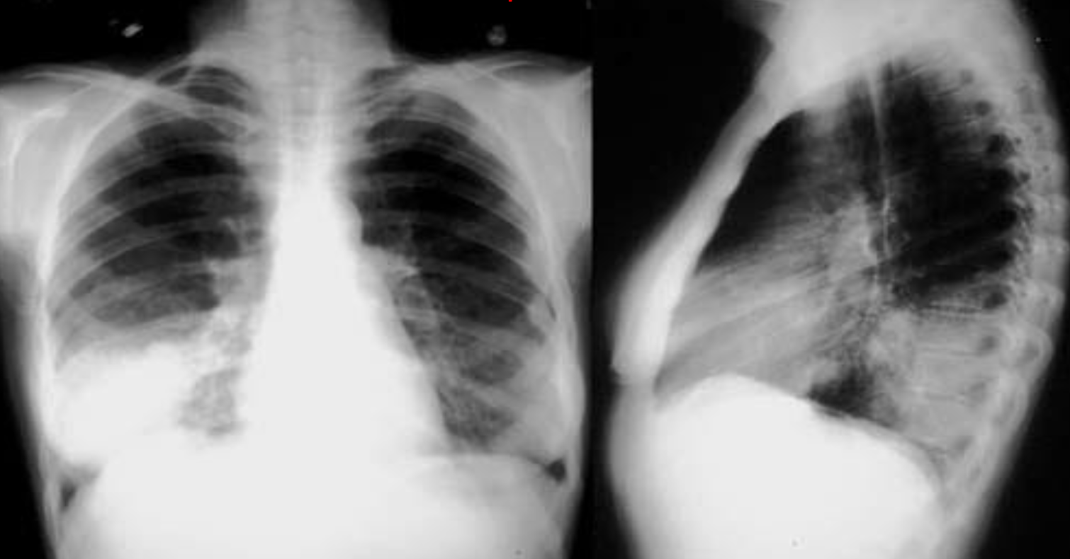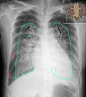 - Bilateral perihilar opacity batwing, or butterfly appearance.