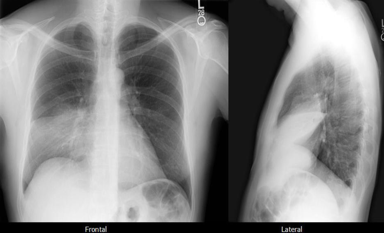 A. What is the most likely diagnosis in the given images; RT lower lobe pneumonia