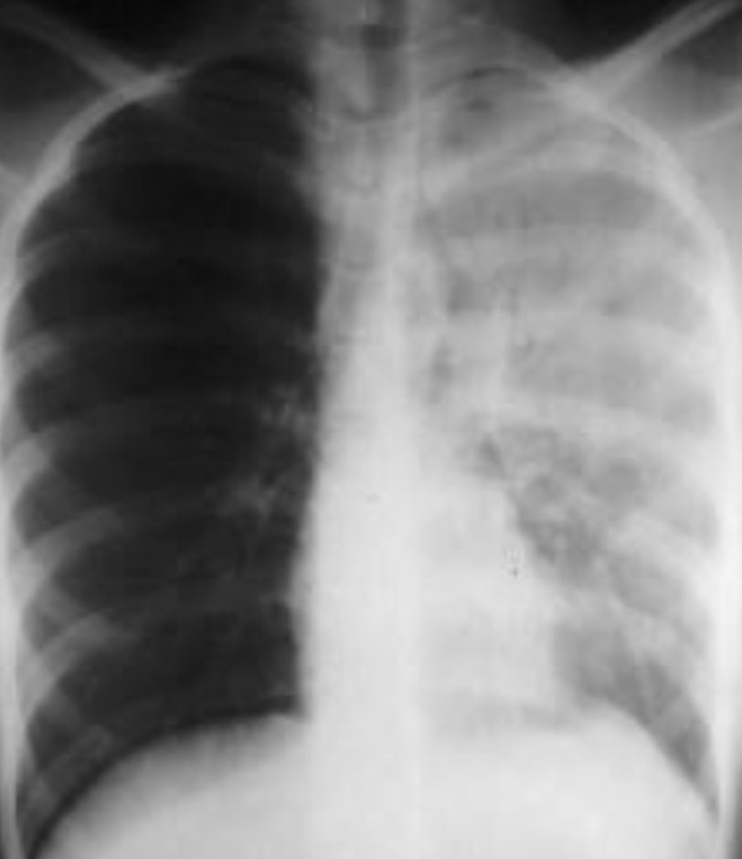 Pneumonia most common due to no deviations of midline - could be truama, ectopy, etc… so follow through with case given for diagnosis