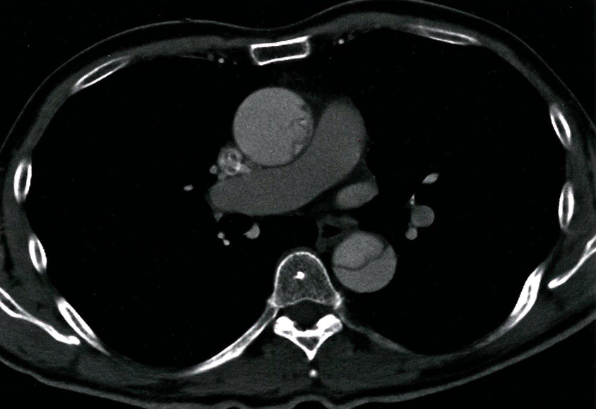 A. Imaging examination CT - Contrast; axial plane, mediastinal window)
