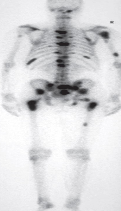 B. Identify the most likely cause of the abnormal vertebrae shown Paget’s disease
