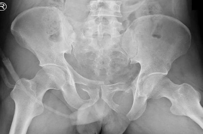 Imaging examination X-ray chest (frontal view) of a premature infant