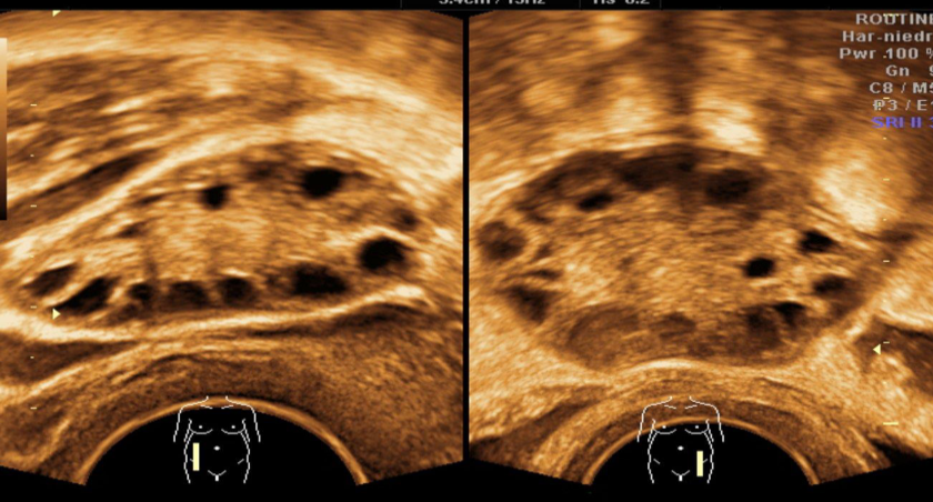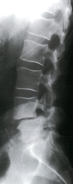 Findings Anterior displacement of L4 on L5 is visible. In addition, there is degenerative disk disease with narrowing of the L4–L5 disk space.