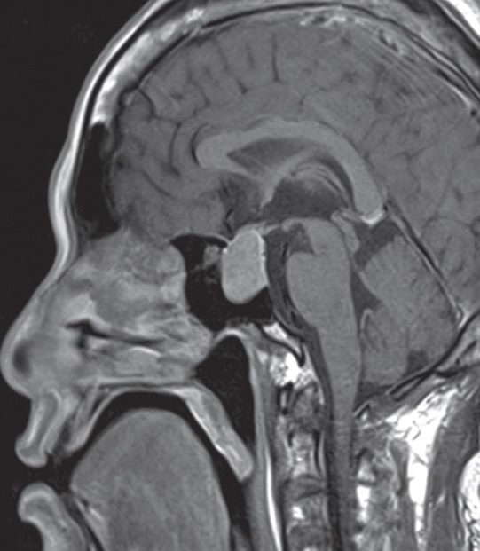 Sagittal T1 post contrast MRI showing a macroadenoma