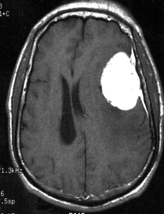 - Homogenous enhancement [Gd- DTPA] [Dural tail]