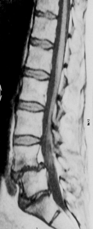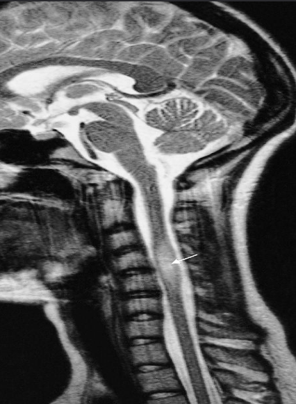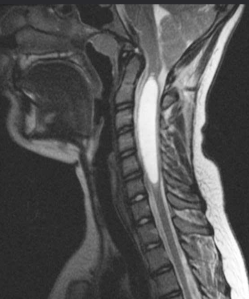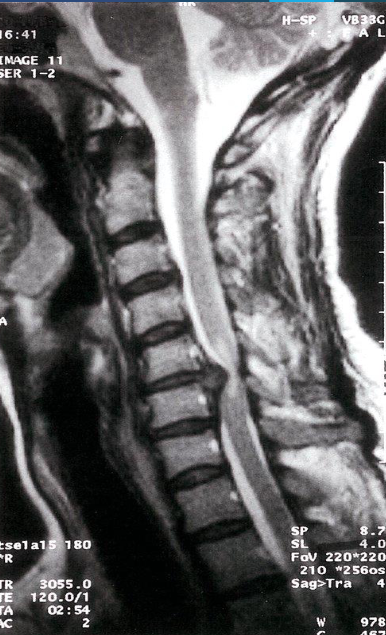 MRI cervical spine (T2-weighted; sagittal plane) of a