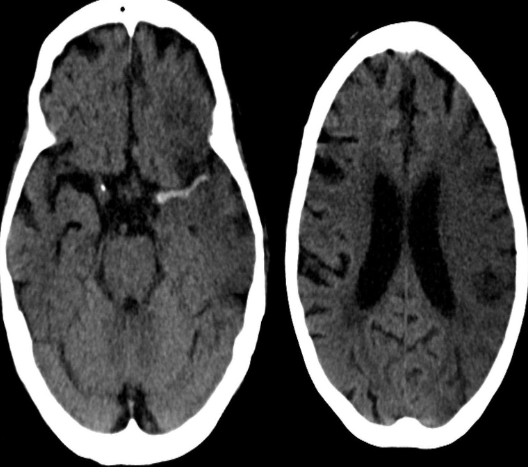 Sign? Hyperdense sign in stroke; LT Middle cerebral artery hyperintense