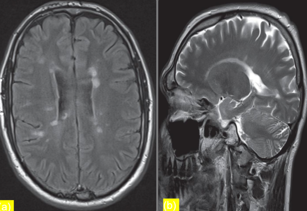 (a) Axial FLAIR sequence at the level of the lateral ventricles