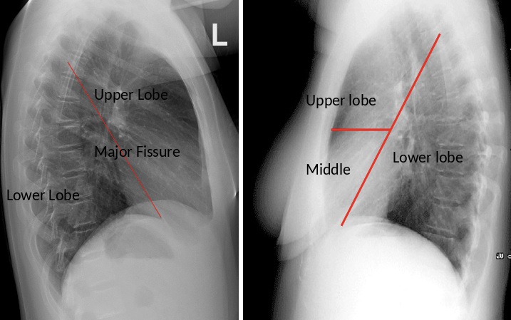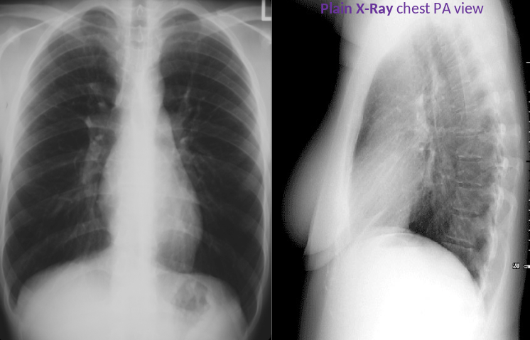 - Lungs are equally Lucent - central opacities in lung are majorly bronchial arteries - area is called hilum ; concave shaped, left is higher; abnormal if lobulated