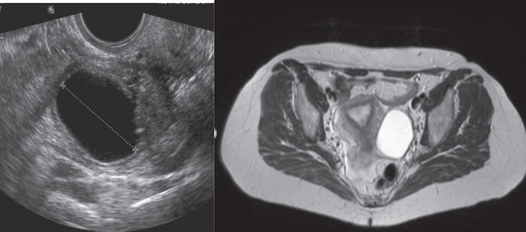 Sometimes a follicle or corpus luteum persists as a follicular or corpus luteum cyst, both of which are easily recognized by ultrasound, CT or MRI.