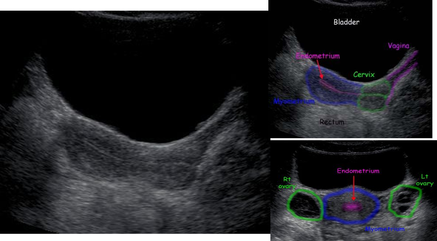 Normal uterus on trans-abdominal ultrasound Longitudinal and transverse views