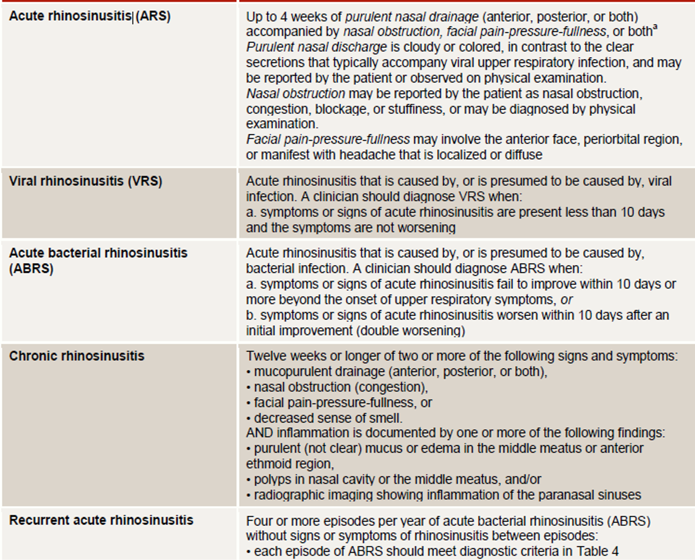 - Acute Sinusitis: Infection lasting 4 weeks, symptoms resolve completely.