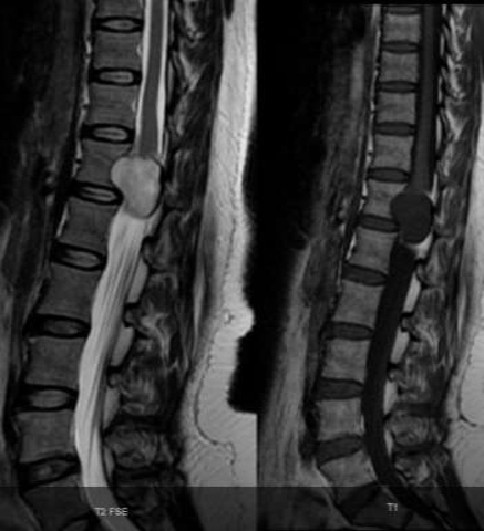 They are most frequently seen in the cervical and lumbar regions. In general schwannomas appear as rounded lesions.