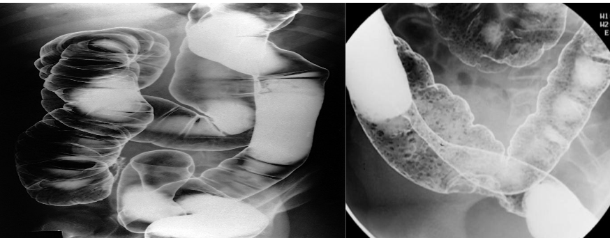 Enema double contrast which is barium & air (+ve Vs –ve)