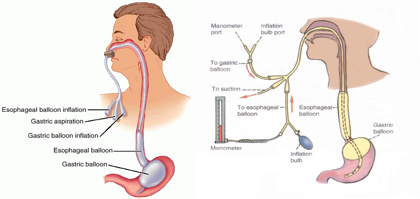 Only used to control acute bleeding from rupture esophageal varices due to portal hypertension e.g :