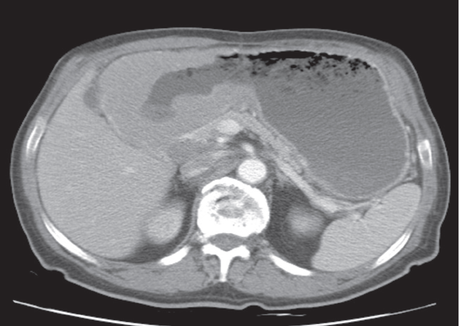 Gastric lymphoma in the antrum, demonstrated on CT .