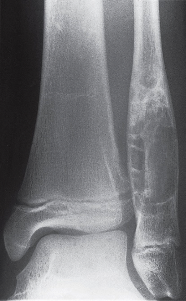 Bone expansion with an intact, well-formed cortex usually indicates a slow growing lesion such as an enchondroma or fibrous dysplasia.