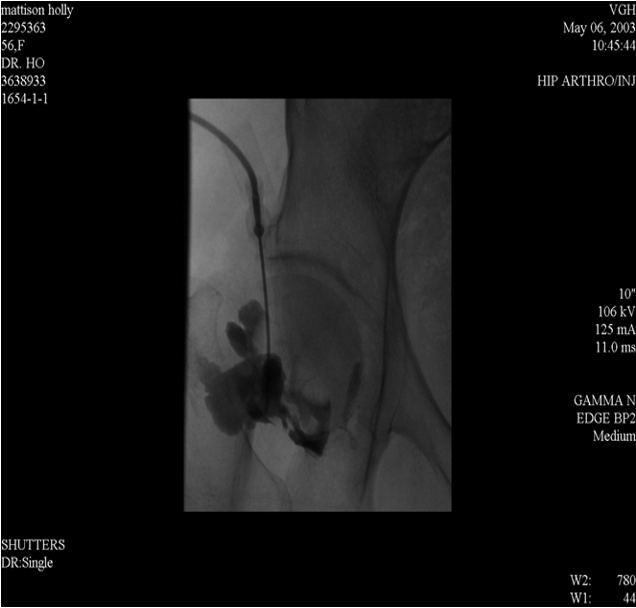 Arthrography is introduction of contrast agent e.g. positive contrast such as iodine solution and negative contrast such as air or combination of both into the joint space.