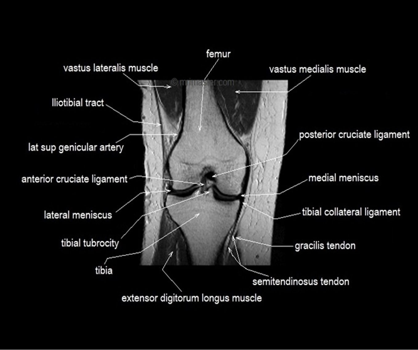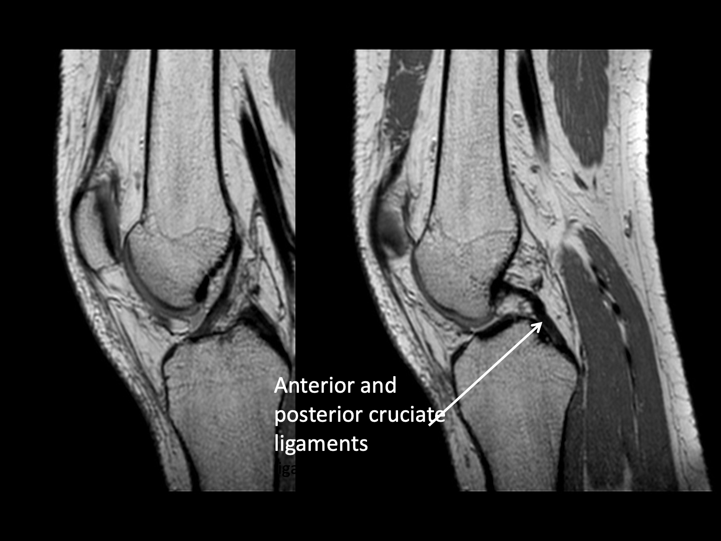 MRI is also very useful for demonstrating injury to soft tissues such as muscle, tendons and ligaments and is particularly useful in knee injuries.