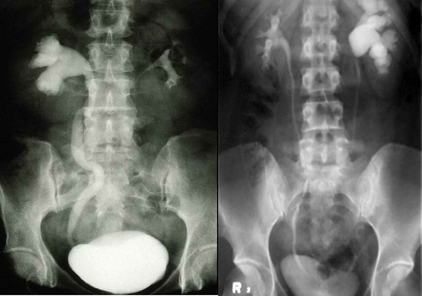 If obstruction is at lower level, there is dilation of ureter and pelvis of kidney.