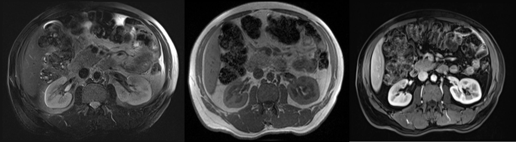 MRI gives similar anatomical information to CT, with the advantage of being able to obtain scans directly in multiple planes.