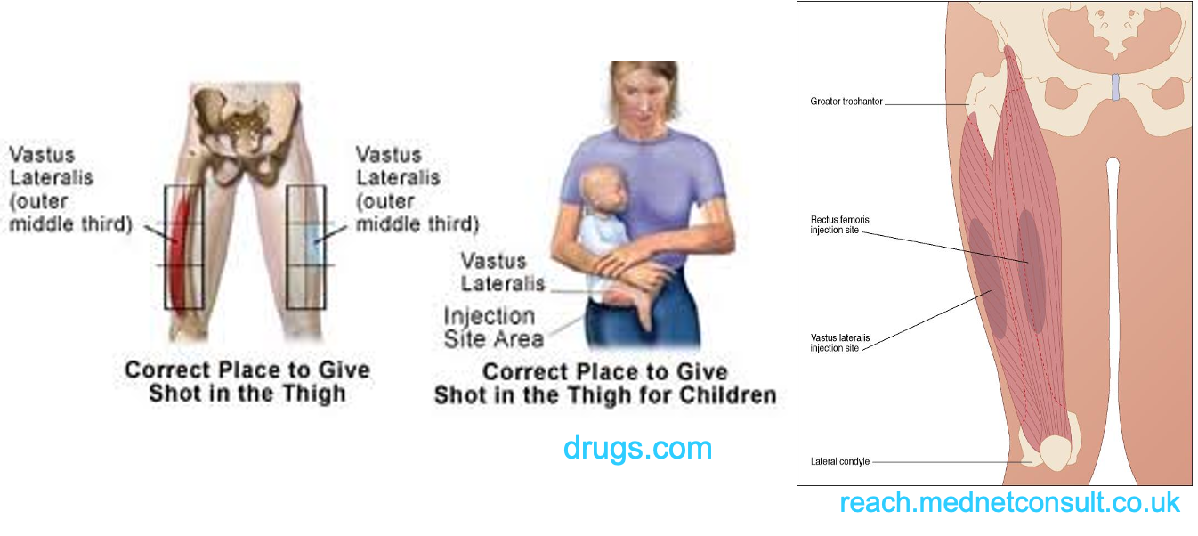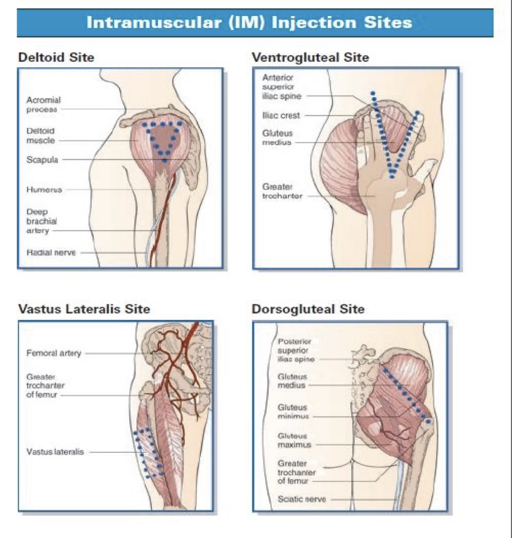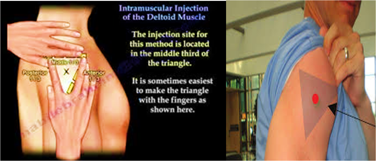 Deltoid up to 1 ml, 1 ½ inch, 19 or 21-gauge needle usually used