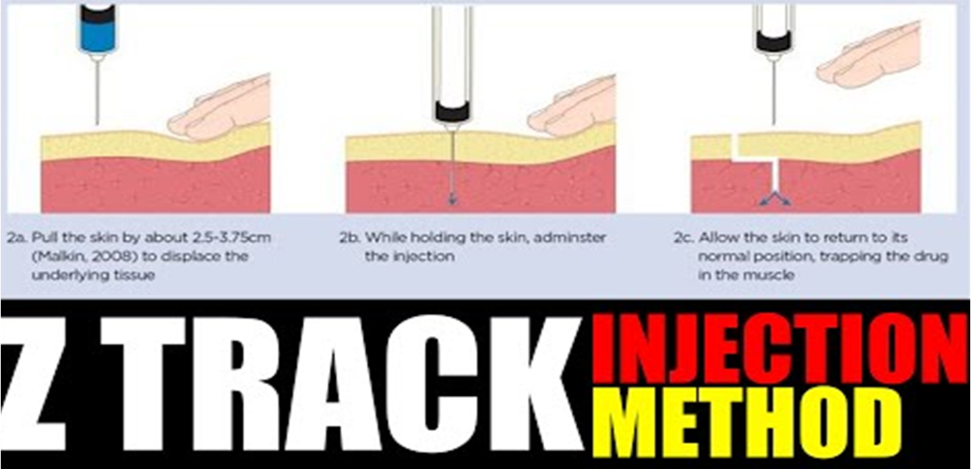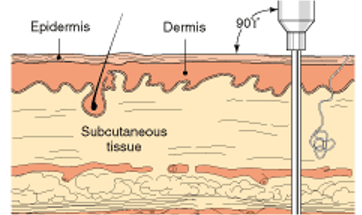- 90 degree, aspirate to check for blood - remove needle if positive, drop in designated contained - change area.