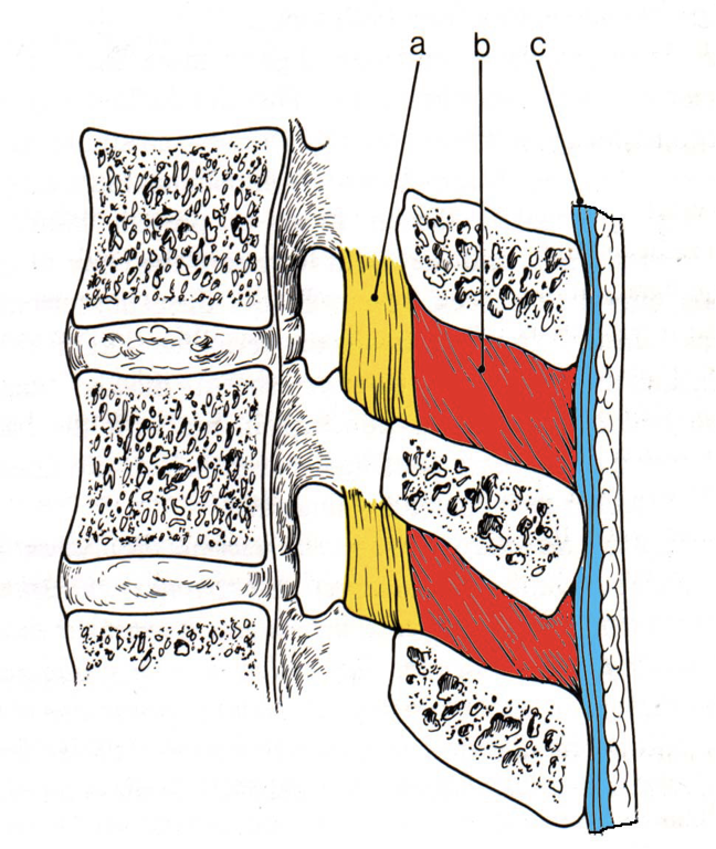 Ligament flavum is a strong, elastic, yellow membrane covering the interlaminar space between the vertebrae.