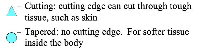Edge (Cutting āTriangular shape tipā ; skin | Tapered āround shaped tipā; organs/soft-tissues)