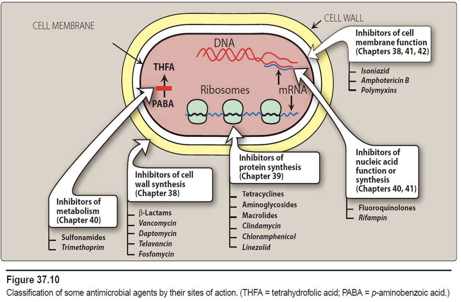 2-Selective toxicity: the antimicrobial agent blocks or inhibits a metabolic pathway in a micro-organism which is either absent or is different in the mammalian cells of the human host.
