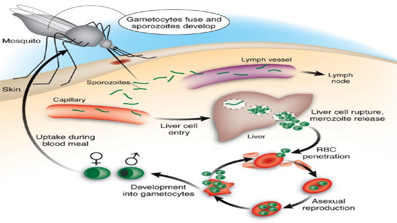 - Some merozoite — gametocytes— mosquito — sporozoites