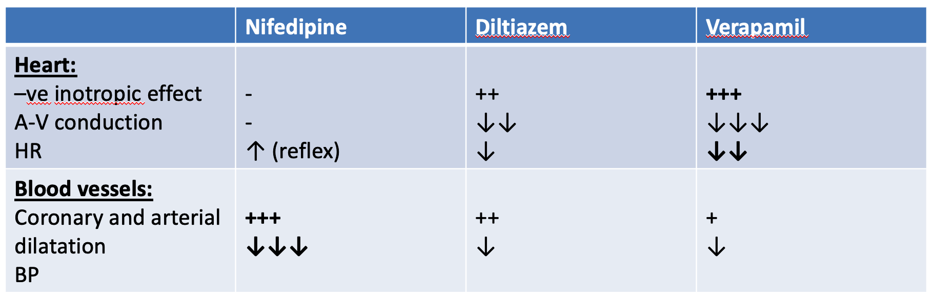 - With β-blockers: because both β-blockers and verapamil have –ve inotropic and chronotropic effects, this will cause severe cardiac depression (nifedipine is the drug of choice if β-blockers are used with CCBs because it doesn’t cause bradycardia).