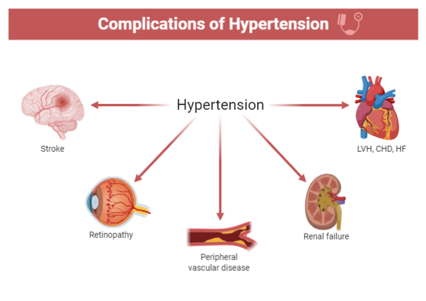 • It leads to chronic changes in the vascular endothelium, particularly of the small vessels, and can therefore affect any organ system.