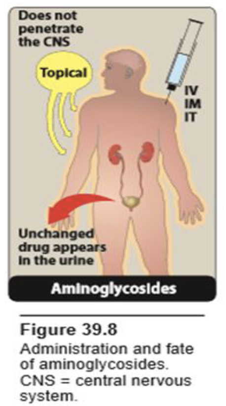 - They are water-soluble and do not readily cross any lipoprotein tissue barrier , thus intestinal absorption is poor, and penetration to CSF is very limited.