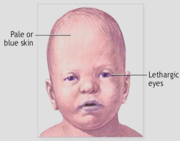 Grey Baby Syndrome: (40% Mortality) • If large doses are given to infants with immature hepatic conjugation. • Abdominal destention, vomiting, cyan; It occurs in newborn infants with large doses, especially those born prematurely. It is due to immature hepatic conjugating mechanism and in-adequate renal excretion which leads to high levels of chloramphenicol. This syndrome is characterized by abdominal distention, vomiting, progressive cyanosis, irregular respiration, hypothermia, flaccid paralysis and vasomotor collapse. Mortality is high (40%).