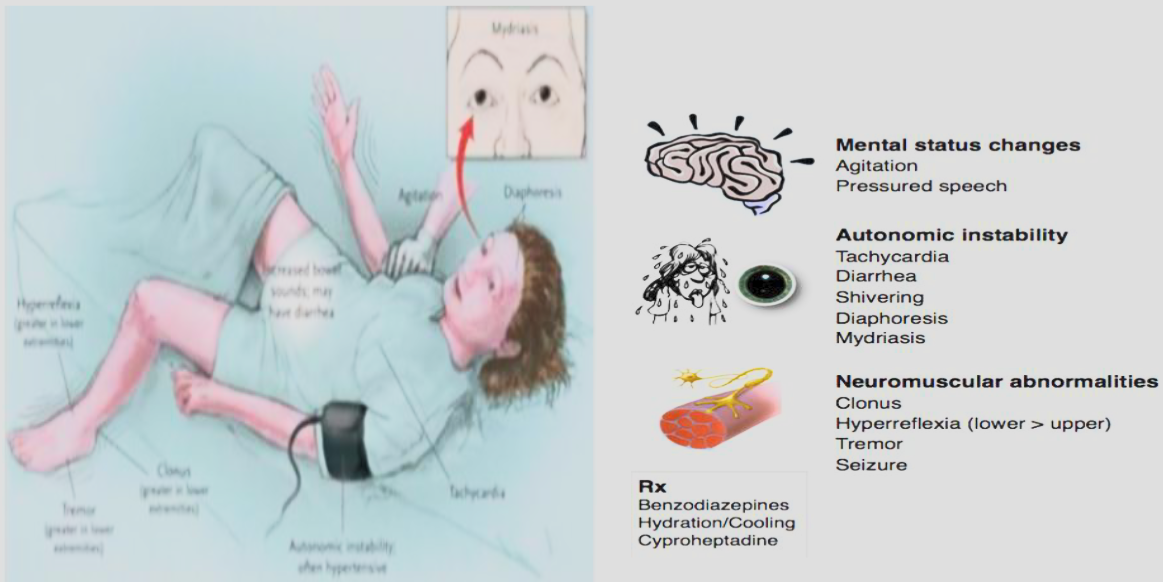 SEROTONIN SYNDROME It is a cluster of autonomic, motor & mental status changes resulting from excess serotonin [5(HT)]