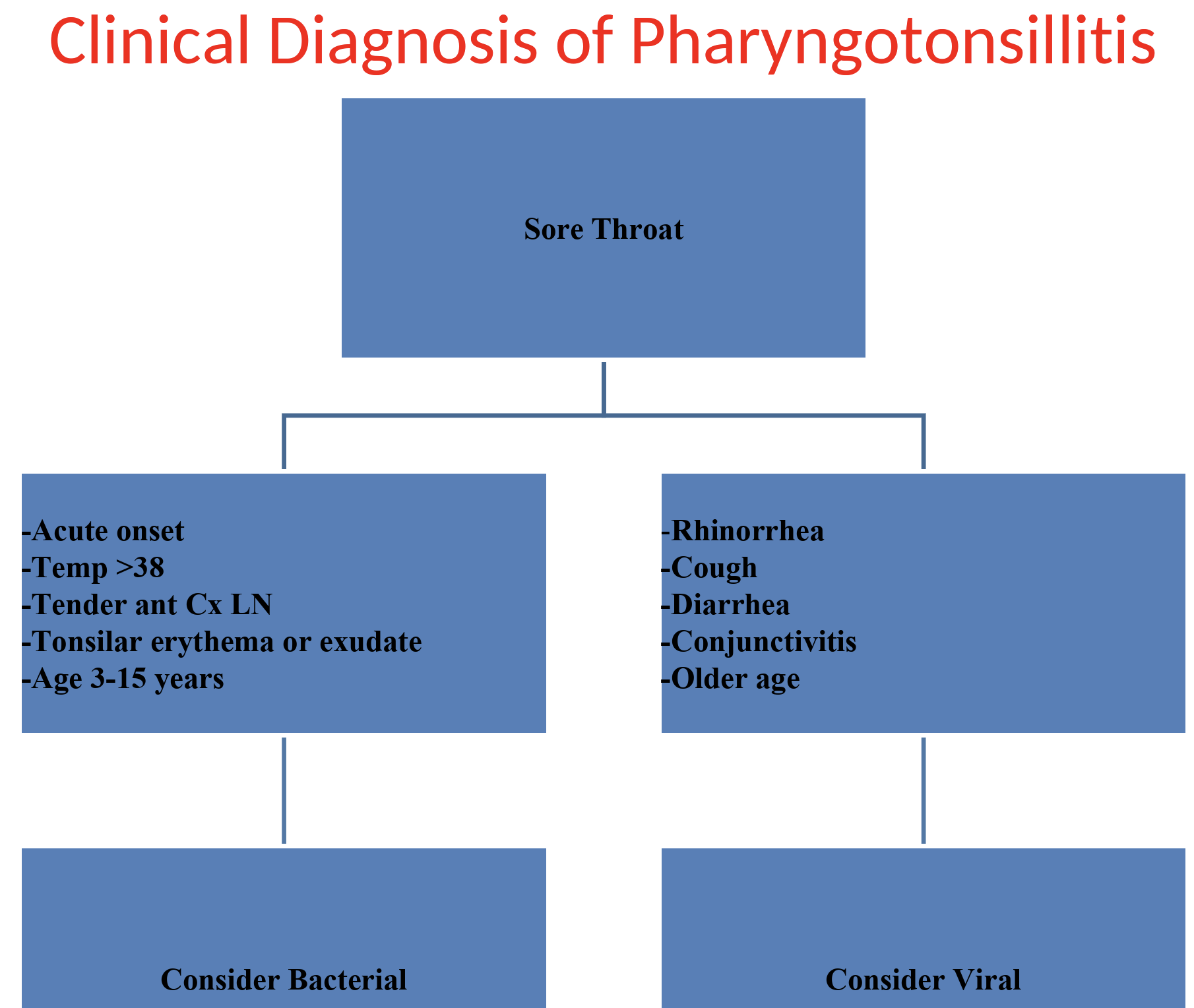 *It is often impossible to distinguish clinically between streptococcal and non-streptococcal sore throat. *