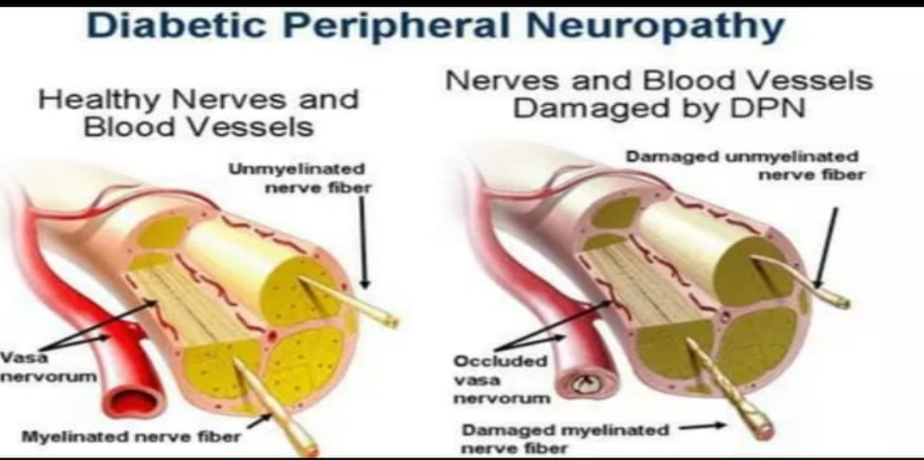 There is axonal neuropathy with marked loss of mylinated fibers with thickning of endoneuronal vessel wall leading to vascular insufficiency and ischemia of the affected prepheral nerve.