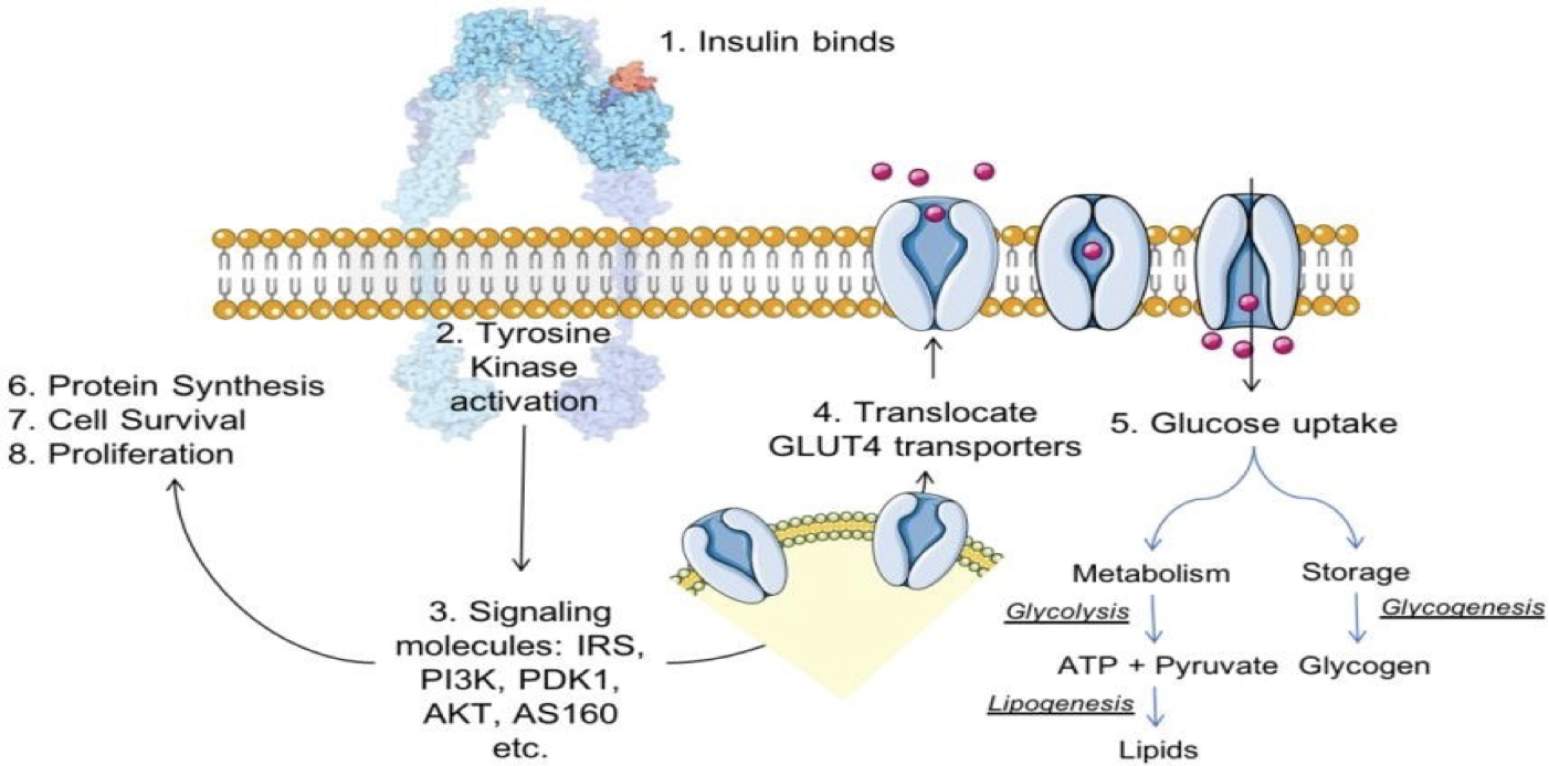The binding of insulin to the α chain of IR causes structural changes in the β chain by inducing auto‐phosphorylation in tyrosine residues.