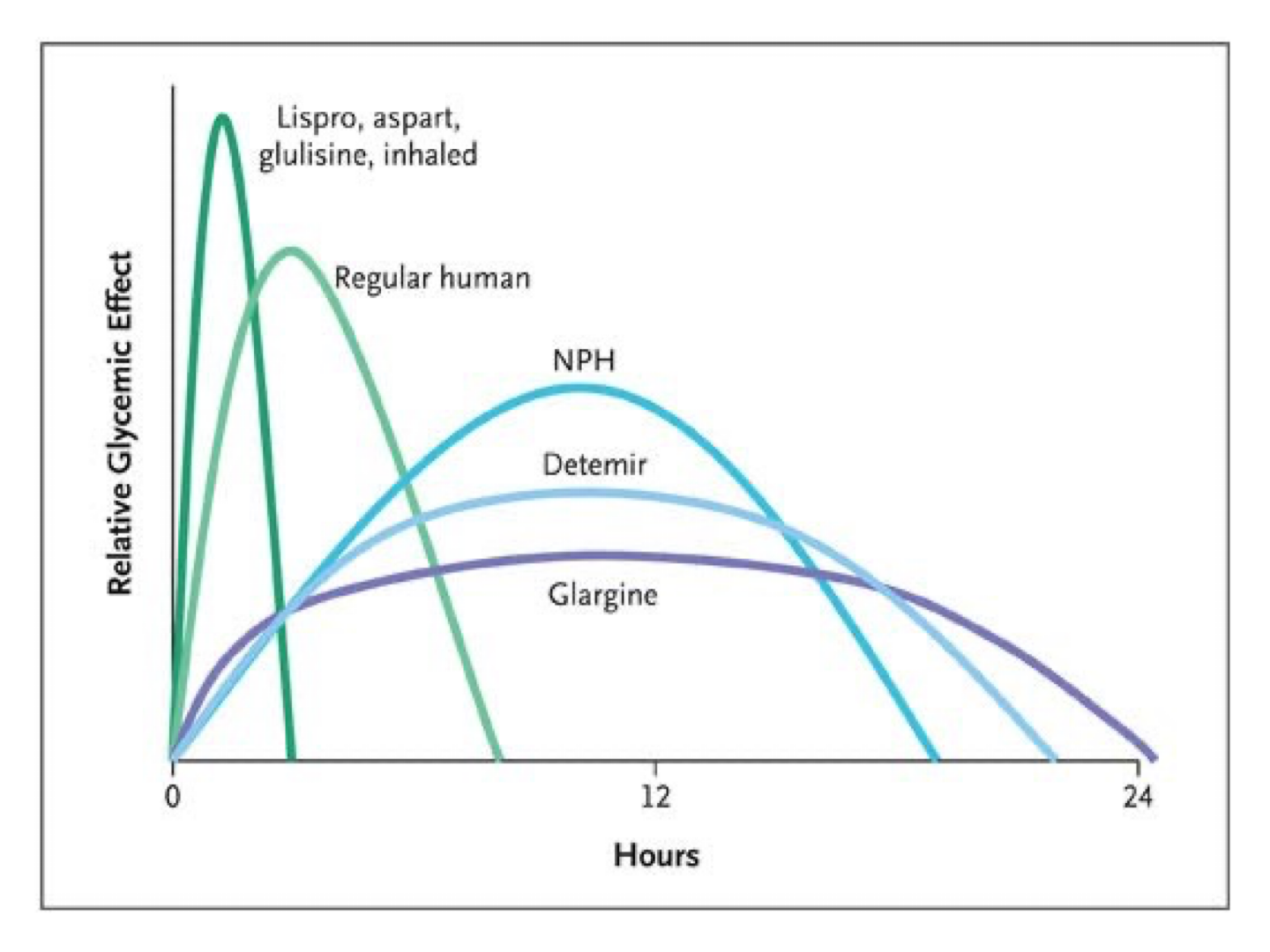 - Pre-mixed formulations (Biphasic) of 30% regular (short) and 70% NPH (intermediate): provide rapid onset and prolonged duration.