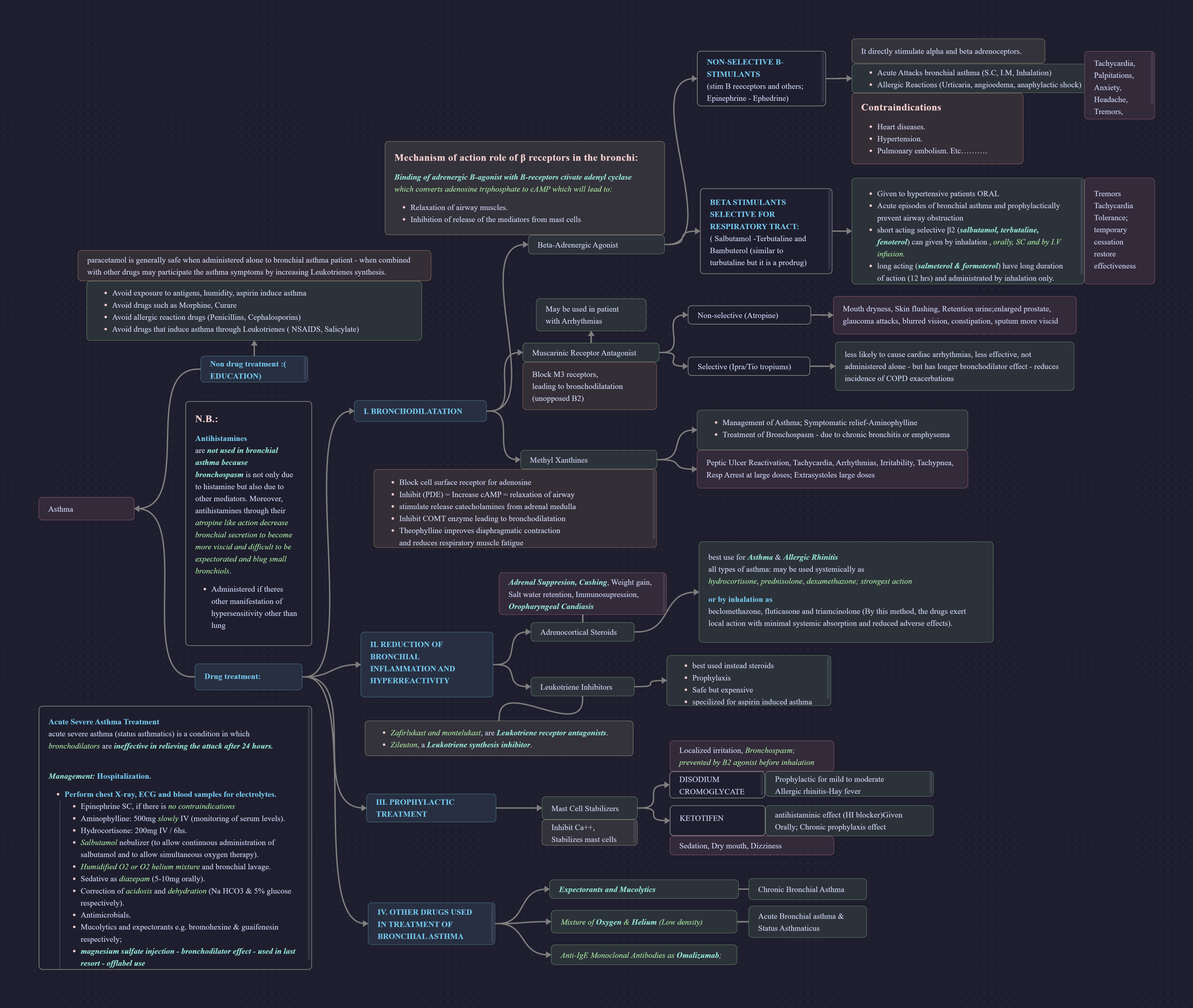 - Avoid drugs which precipitate asthma as (parasymathomimetics-ββ-PGF2α- -histamie releasers as morphine ,curare, Drugs that cause allergic reactions e.g. penicillins, cephalosporins..etc Salicylate and other NSAIDs [they can induce asthma through increased synthesis of leukotrienes]. - ((asprin induced asthma))