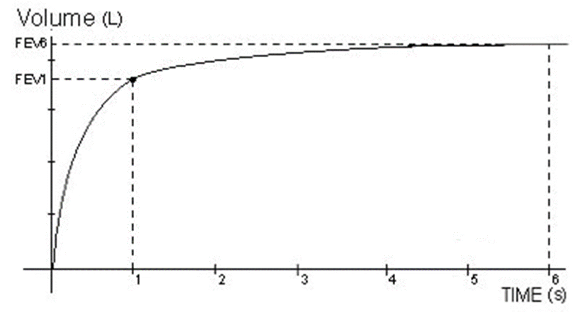 | FEV1 - Forced expiratory volume in one second | The volume of air expired in the first second of the blow |