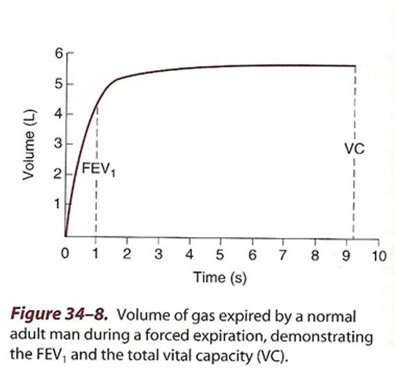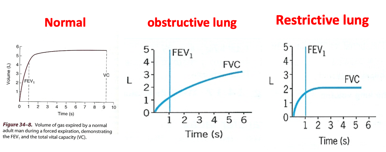 Normally the whole FVC is expelled in four seconds 80% in second normally