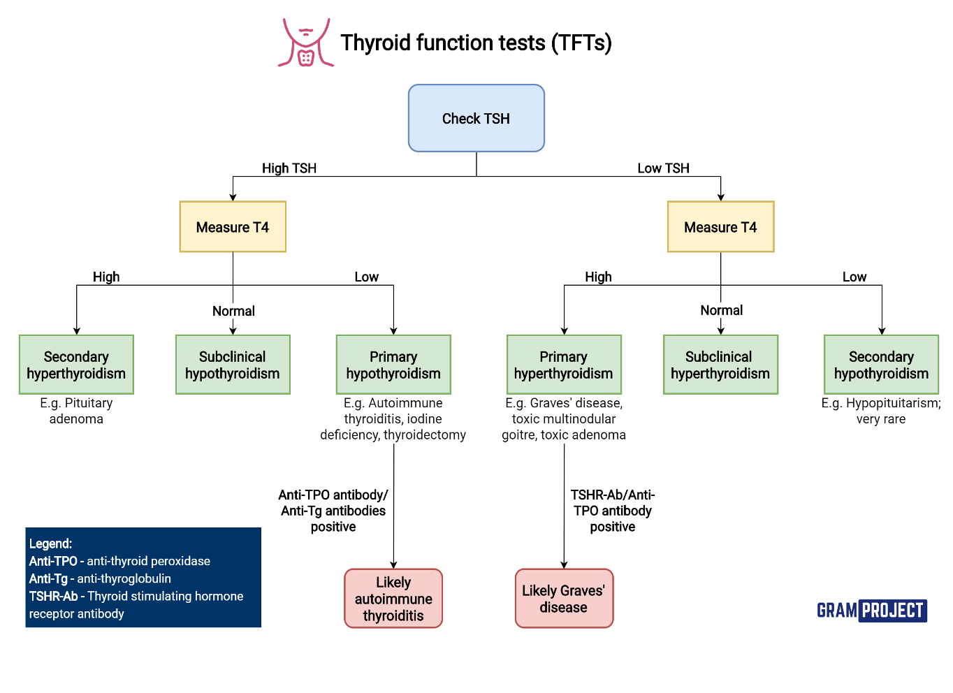 2- Tests to elucidate the cause of the thyroid dysfunction: