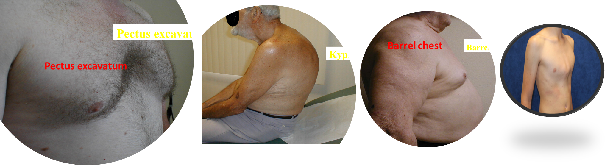 Other abnormalities include pigeon chest (pectus carinatum), funnel chest (pectus excavatum). Kyphosis and/ or scoliosis.