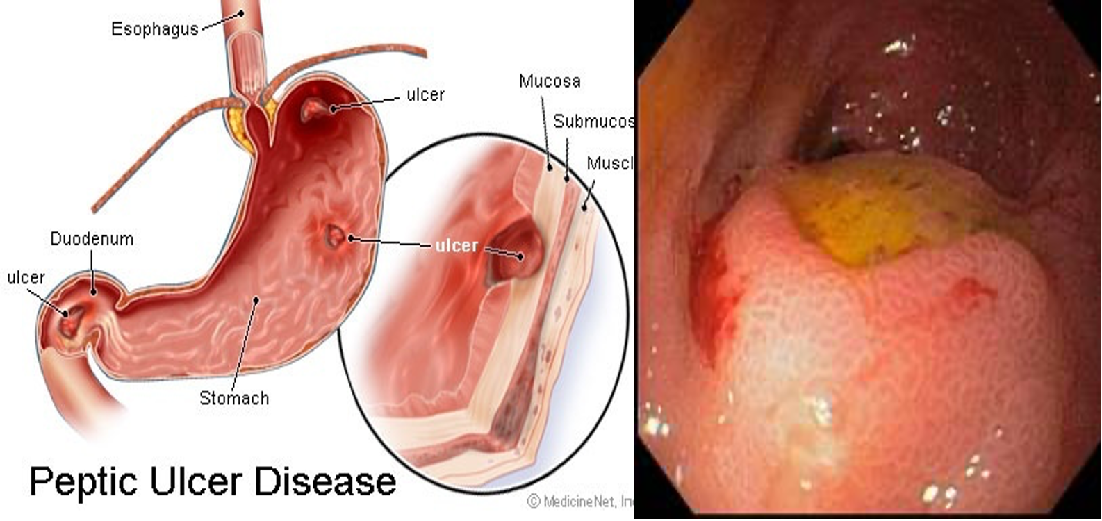 Combined gastric ulcer + Duodenal ulcer, treatment of choice is partial gastrectomy that includes the entire antrum and the ulcer plus truncal vagotomy of both vagus nerves.