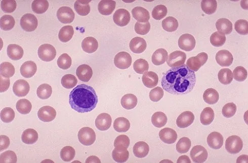 The image shows a microscopic view of a peripheral blood smear. In this image, there are red blood cells (RBCs) with specific annotations pointing out Howell-Jolly bodies (indicated by arrowheads) and target cells (indicated by arrows). Howell-Jolly bodies are remnants of RBC nuclei usually removed by the spleen. They are observed in patients who have undergone a splenectomy or have functional asplenia, such as from sickle cell disease. Target cells can also occur following a splenectomy.